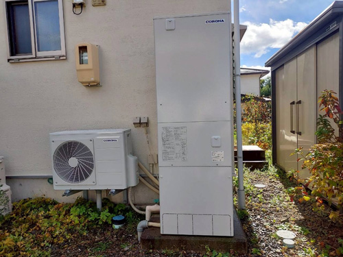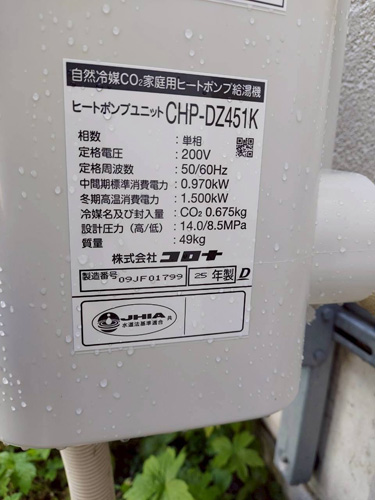 甲州市塩山下於曽 コロナ自然冷媒CO2家庭用ヒートポンプ給湯機ヒートポンプユニットCHP-DZ451K エコキュート交換工事